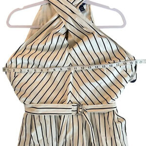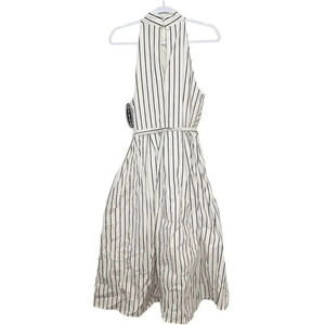 Scoop Belted Halter Midi Dress Women's L White Black Lined Minimalist
