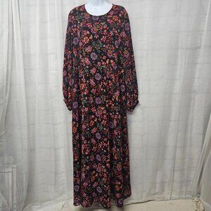 Scoop Black Purple Floral Maxi Dress Boho Goth Cottagecore Festival 3X