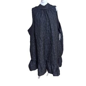 Scoop Formal Shift Dr Embossed Flowers Bow Back Ruffle Bottom Size 4X Navy Blue