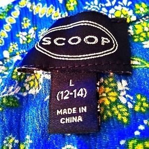 scoop large 12 - 14 blue and white floral. elastic pull on style waistband. tiered gathered full skirt