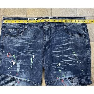Scoop Men’s Paint Spattered Moto Jeans 38x30 Acid Wash Distressed Biker Denim