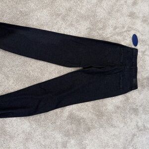 Stylish black jeans with a flare and wide leg design. Perfect for a chic look.