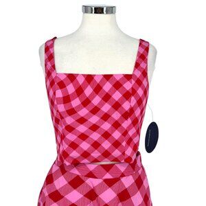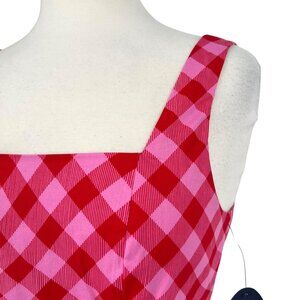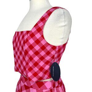 Scoop NYC Pink Red Gingham Sleeveless Two Piece Tank Skirt Set Size Small NWT
