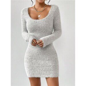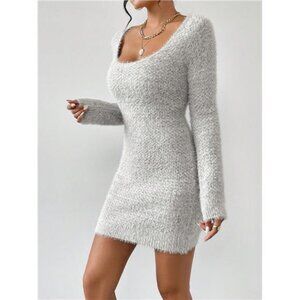 Scoop Neck Fuzzy Sweater Dress