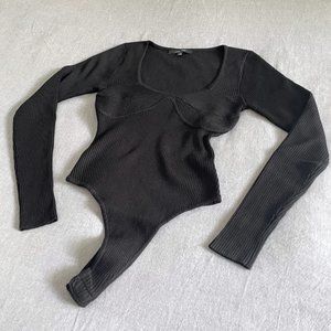 Scoop Neck Rib Knit Bustier Thong Bodysuit | Love Tree