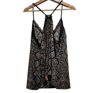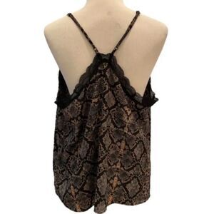 Scoop Satiny Aztec Academia Lace Snake Print Cami Tank Top Blouse Shirt