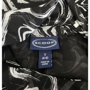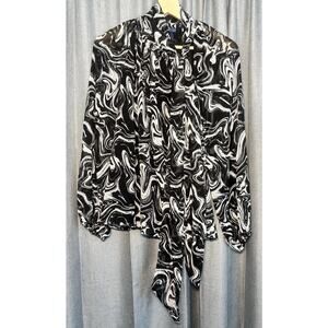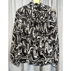 Elevate your wardrobe with this stunning Scoop Tie Neck Blouse in a Retro Style. The black and white sheer long sleeve blouse features a geometric/swirl pattern, tie closure, and side neck tie accents. Perfect for travel, party/cocktail, casual, workwear, and business occasions, this regular fit blouse is machine washable and made of high-quality material from China.