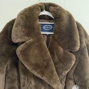 Scoop Women's Faux Fur Oversized Maxi Coat Brown Size Medium (8-10) NWT