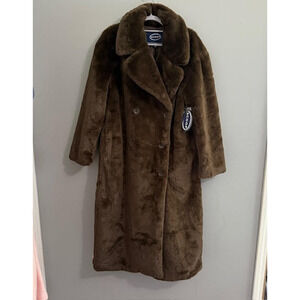 Scoop Women's Faux Fur Oversized Maxi Coat Brown Size Small (4-6) NWT