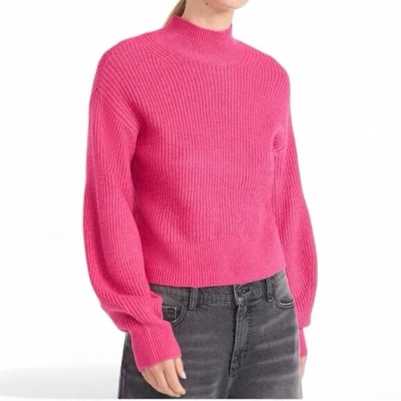 Name Brand: Scoop Women's Shaker Stitch Turtleneck Sweater Lightweight In Pink Size XS