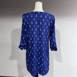 Key words : Long sleeve dress, anchor print dress, marine print long sleeve beach vacation cruise casual dress
