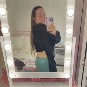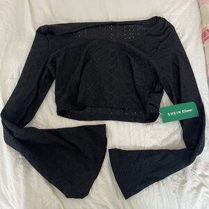 Black size L (8-10) Super crop Casual Eyelet embroidery Slim fit Knitted fabric