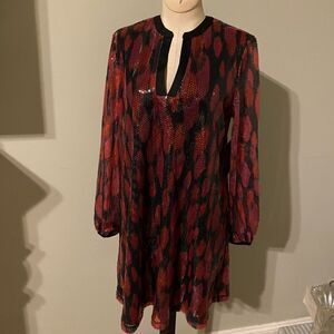 NWT Sz- XS Sequined dress by scoop in a snakeskin print Red/ black