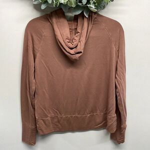 Scorpio Sol Sasha Pullover Hoodie Dark Mocha in size S. Good preowned condition. Adjustable drawstring hood, super soft fabric with 4 way stretch, high low style. Please see photos for approximate measurements and details. Item may show difference in color based upon photography and perception. Photos are part of the description, as everyone’s level of condition may vary. From smoke free and pet free home. All packages are shipped the same or next business day.