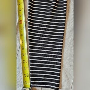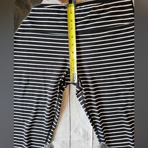 Scorpio Sol •Size Medium• Black White Striped 25.5 Inch Length Yoga Leggings. Shown on a 5'3" inch body. If you're taller or have longer legs these will obviously be shorter on you. Please see measurements in photos provided. In good Pre-owned condition. Very comfortable. Cross posted. I ship out same or next day. Thanks for looking!