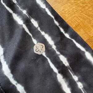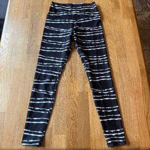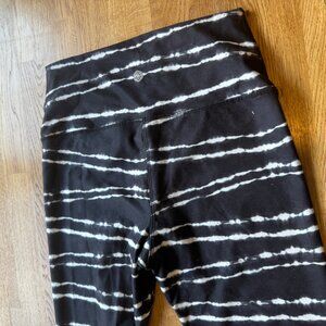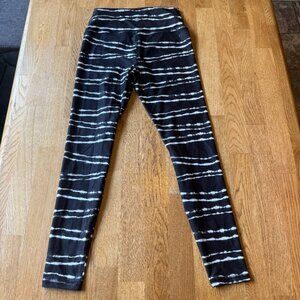 Scorpio Sol Black Tie Dye Striped Leggings. Stock photo provided for style and fit reference. Black with kind of a white tie dye stripe design! No size or materials tags that I could find. Please see measurements. Comparing to a few other pairs listed, these measure similar to a small, maybe a medium. No flaws that I could find!