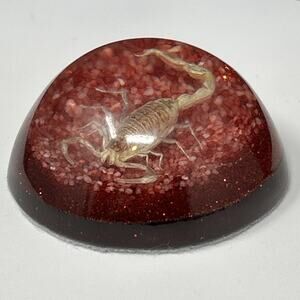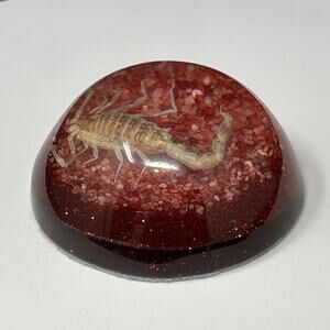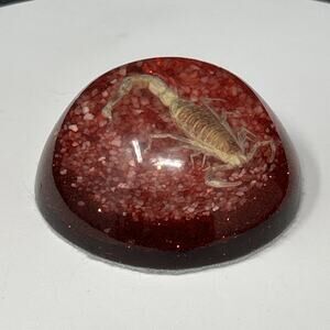 Scorpion Paperweight Acrylic Red Speckled Dome Taxidermy Unique Décor