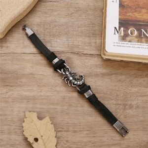 Scorpion Black Leather Multilayer Unisex Bracelet