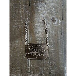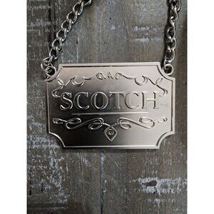 Scotch Silver Toned Liquor Decanter Label Tag For Scotch With Ornate Chain