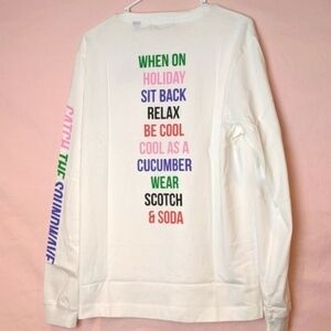 Scotch & Soda 100% Cotton Catch the Soundwave Long Sleeve Vacation Tee in White