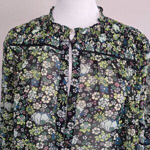 Scotch & Soda Amsterdam Green Floral Blouse Smocked Button Front Lightweight XL