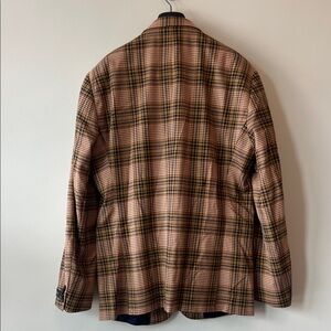 Stylish brown checkered blazer. Ideal for smart-casual events. Features a classic design.