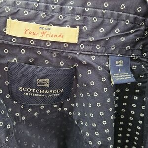 Scotch & Soda Button-down Stretch Navy/White Patterned Long-sleeve Shirt Large