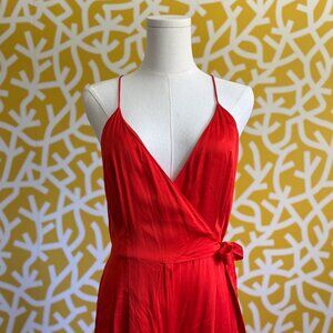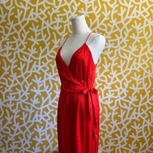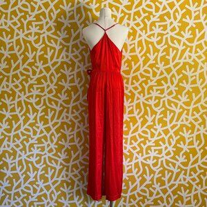 Scotch & Soda Cherry Red Silky Satin One-Piece Halter Jumpsuit w./ Pockets - SM