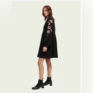 Scotch & Soda Embroidered Mini Dress Black with Floral Sleeves Size M