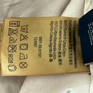 US Size: 28 Inseam: 9" Color: cream/tan Closure: zip, button Pocket: 2 side pockets, 2 back pockets, 1 hidden front pocket Some markings (see photos for reference) In great condition
