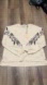 Cream sweatshirt with floral print and embroidery on sleeves. Features purple and green/gray floral design.