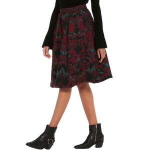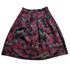 Scotch & Soda Floral Mid Rise A-Line Pleated Black Red Midi Skirt Size XS
