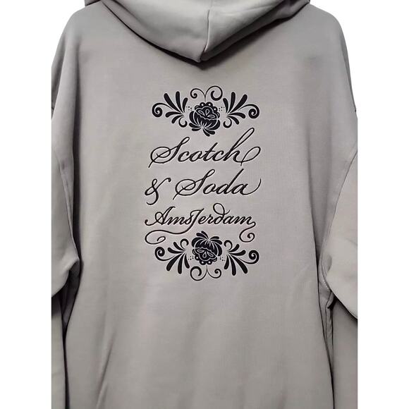Scotch & Soda Gray Pullover Hoodie Unisex XL Black Embroidered Front & Back Sm