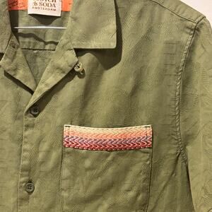 Scotch & Soda Green Patterned Embroidered Short Sleeve Button Down Medium