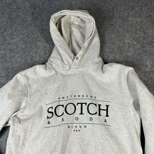 Scotch & Soda Hoodie Mens Medium Logo Art Pullover Light Heather Gray