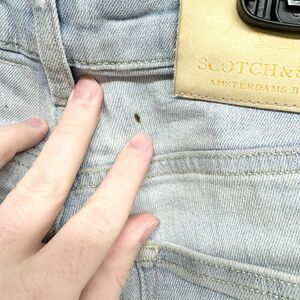 SCOTCH & SODA Jeans Mens Size 28/32 Distressed Skim Low Rise Light Wash Ripped stylish, slim-fit, modern, rugged, edgy, casual, durable, trendy, comfortable, versatile