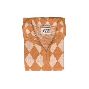 Scotch & Soda Kids Argyle Checkerboard Knit Sweater – Size 10/140 – Tan & Cream