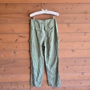 Beautiful green cargo style pants in a pretty olive green shade. Overall in great condition, minor wear around the waistband as shown from wear/tucking tops in. Lots of life left.