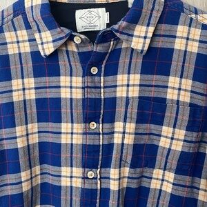 Scotch & Soda plaid long-sleeved button-down shirt with a front-pocket.