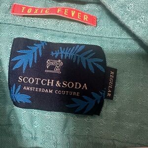 Scotch & Soda Men’s Linen Shirt L Blue/Green Button-Up Short Sleeve “Toxic Fever”
