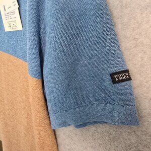 Scotch & Soda Mens Medium Lightweight Short Sleeve Striped Colorblocked Knitwear Top Preppy Sweater