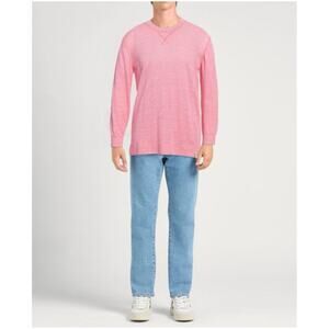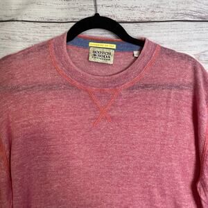 The Scotch & Soda Men's Linen Blend Top is a stylish and comfortable sweater perfect for casual occasions. Made from a tight-knit linen fabric in a solid pink color, this pullover features long sleeves and a crew neck neckline. Its lightweight and breathable design make it ideal for all seasons, especially summer and spring. The regular fit and size M ensure a comfortable and flattering silhouette for men. Machine washable for easy care and maintenance, this top combines quality, style, and versatility in one chic garment.