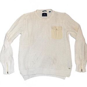 Scotch & Soda Men’s XL Cream Knit Cotton Sweater Sea You Collection Crewneck Pocket Zip Cuffs