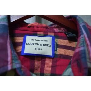 Scotch & Soda Multicolor Patchwork Plaid Button-Up Shirt Men’s Size Large