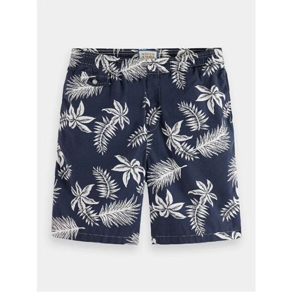 Scotch & Soda NWT Mens Relaxed Straight Print Poplin Bermuda Shorts Navy M