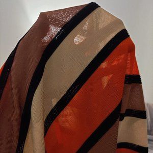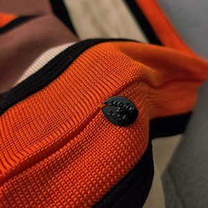 Gorgeous, excellent condition knit top by Scotch & Soda. Orange with tan/brown/black stripes. Lovely fine but heavy knit. I have worn this top twice - I love the fit and style but the color is just not good on me. There is one very tiny start of a pill on the back of one sleeve, shown in last photo. No runs, pulls or pilling otherwise. Has only been hand washed cold and laid flat to dry.