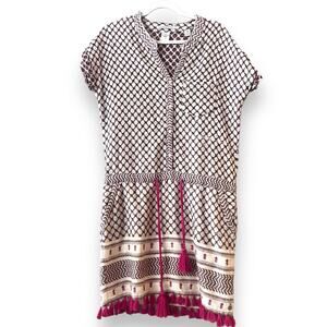 The tasseled and fringed accents add a fun and playful touch to the dress, while the pullover closure makes it easy to slip on and off. This dress is a size 0/2 and is ideal for petite women. It's fully lined, making it an excellent choice for both summer and spring. Don't miss out on the chance to add this gorgeous dress to your wardrobe.