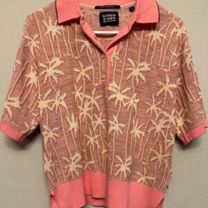 Scotch & Soda Pink and Cream Palm Tree Pattern Knit Polo XS