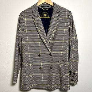 Scotch & Soda Plaid Double Breasted Blazer Brown Yellow Women’s Small NWOT