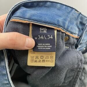 Tag size: Mens 34x34 but inseam measures a little over 32"